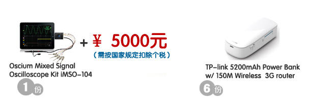 一等獎1名:價值:¥1800 和 5000元人民幣 二等獎6名:價值:¥159