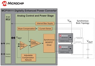MCP19111數(shù)字增強型電源模擬系列可在4.5V至32V的寬電壓范圍內(nèi)工作,與傳統(tǒng)基于模擬技術(shù)的解決方案相比,靈活性顯著提升。事實上,MCP19111是世界上第一款合成的混合信號電源管理控制器,將基于模擬的PWM控制器與功能齊全的閃存單片機集于一體。這樣的集成提供了數(shù)字解決方案的靈活性,也具備基于模擬的控制器的速度、性能和分辨率。MCP19111器件支持高達32V的運行,并提供針對同步降壓應用而配置的集成MOSFET驅(qū)動器。當與Microchip擴展的高速MOSFET系列結(jié)合使用時,MCP19111能夠驅(qū)動可定制的高效率電源轉(zhuǎn)換。