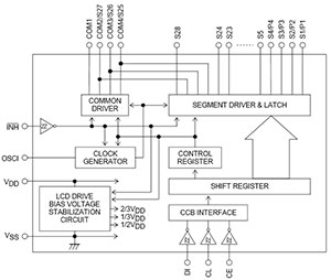- 支持通過串行數(shù)據(jù)控制來實現(xiàn)靜態(tài)(1/1占空比),或1/2占空比1/2偏置,或1/3占空比1/3偏置,或1/4占空比1/3偏置驅動