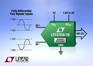 LTC2338-18是一個 18 位、1Msps、無延遲模數(shù)轉(zhuǎn)換器,具備寬 ±10.24V 全差分、真正雙極性輸入范圍,適合高電壓和工業(yè)應(yīng)用。該器件采用單 5V 電源,可實現(xiàn) 100dB SNR和 -110dB THD,并具備一個 2.048V (漂移最大值為 20ppm/oC) 內(nèi)部基準(zhǔn)和基準(zhǔn)緩沖器。一個輸入分壓器網(wǎng)絡(luò)用于對輸入信號進行調(diào)節(jié)和電平移位,從而免除了直接連接真正雙極性信號所需的復(fù)雜電路。