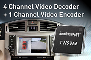 TW9966是一款面向車用360度全景環(huán)視影像應(yīng)用,且包含一個(gè)內(nèi)置模擬視頻編碼器的四通道模擬視頻解碼器?;谑袌?chǎng)領(lǐng)先的Intersil多通道視頻監(jiān)控技術(shù),TW9966提供集成于一個(gè)芯片的四個(gè)模擬視頻解碼器和一個(gè)模擬視頻編碼器,以取代五個(gè)分立元件,幫助簡(jiǎn)化設(shè)計(jì)和節(jié)省電路板空間。TW9966專為汽車應(yīng)用進(jìn)行了優(yōu)化,提供業(yè)內(nèi)最佳的模擬解碼性能,可為駕駛員產(chǎn)生具有卓越畫面質(zhì)量的360度全景環(huán)視影像。