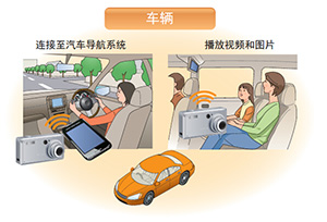 - 車輛:連接至汽車導航系統(tǒng)、播放視頻和圖片