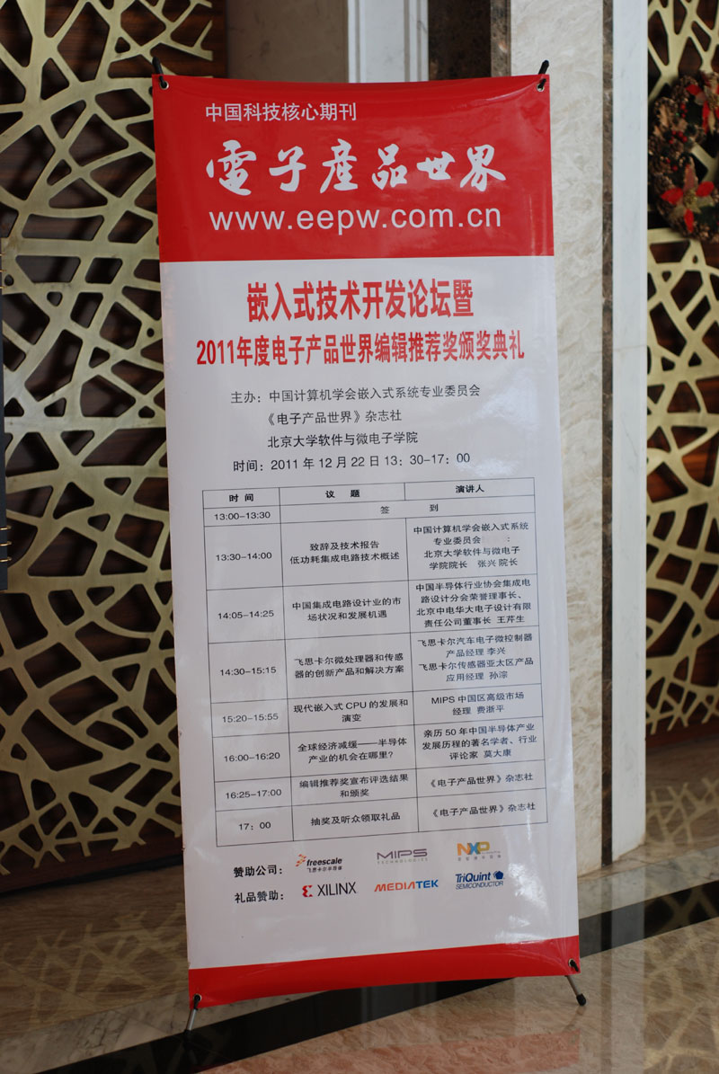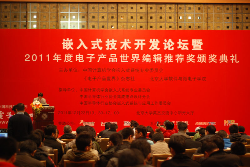12月22日,由中國計(jì)算機(jī)學(xué)會(huì)嵌入式系統(tǒng)專業(yè)委員會(huì)(微機(jī)專業(yè)委員會(huì))、電子產(chǎn)品世界雜志社、北京大學(xué)軟件與微電子學(xué)院舉辦的2011年嵌入式技術(shù)開發(fā)論壇暨2011年度電子產(chǎn)品世界編輯推薦獎(jiǎng)?lì)C獎(jiǎng)典禮在北京大學(xué)英杰交流中心陽光大廳隆重舉辦。來自北京大學(xué)、中科院研究生院、北京航空航天大學(xué)、北京郵電大學(xué),北京理工大學(xué)和北京科技大學(xué)等高校的兩百多名電子信息專業(yè)研究生和周邊資深電子技術(shù)工程師參加了此次盛會(huì)。查看詳情>>