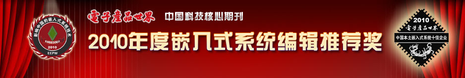 嵌入式系統(tǒng)編輯推薦獎評選是中國科技核心期刊《電子產(chǎn)品世界》雜志社(簡稱EEPW)每年舉辦的重要活動之一,開始于2004年,今年已是第7屆。在中國半導(dǎo)體行業(yè)協(xié)會集成電路設(shè)計分會、中國計算機(jī)學(xué)會嵌入式系統(tǒng)專業(yè)委員會(微機(jī)專業(yè)委員會) 及國內(nèi)外廠商的大力支持下,評選活動已頗具規(guī)模和知名度,是EEPW的品牌活動之一。