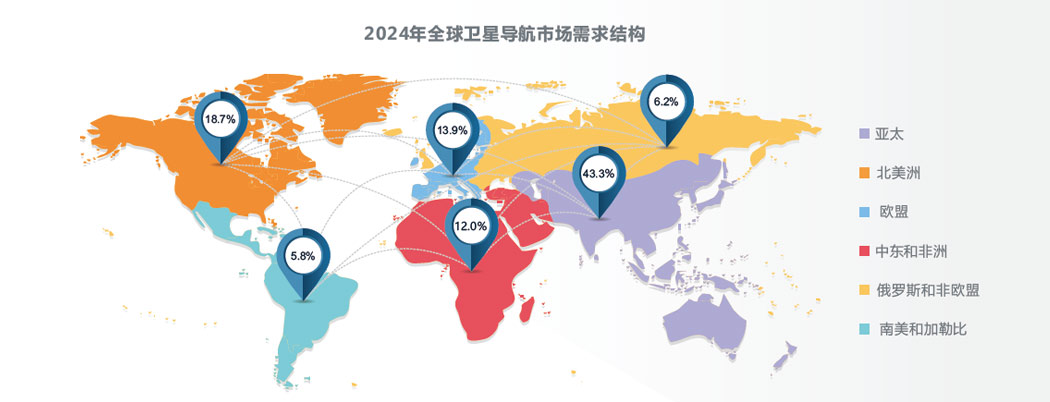 從全球需求結(jié)構(gòu)來看,GNSS下游應(yīng)用呈現(xiàn)出明顯的區(qū)域差異。亞太地區(qū)經(jīng)濟(jì)發(fā)展迅猛且人口基數(shù)大,智能手機(jī)、智能手表等移動(dòng)設(shè)備快速普及,基于定位功能的地圖導(dǎo)航、物流配送等服務(wù)廣泛應(yīng)用,GNSS市場(chǎng)需求旺盛。2024年,亞太地區(qū)占據(jù)了超過四成的市場(chǎng)份額,成為推動(dòng)GNSS行業(yè)發(fā)展的核心力量。北美洲、歐盟以及中東和非洲地區(qū)則構(gòu)成了第二梯隊(duì),各自占據(jù)了10%到20%的市場(chǎng)份額。相比之下,俄羅斯和非歐盟地區(qū),南美和加勒比地區(qū)的需求相對(duì)較少,分別僅占6.2%和5.8%。