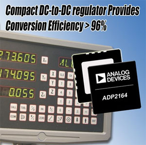 ADP2164是ADI推出的一款高集成度新型 DC-DC 調(diào)節(jié)器,其功率轉(zhuǎn)換效率大于96%,可提高系統(tǒng)電源效率并降低熱量耗損。與其它5 V 調(diào)節(jié)器不同,ADP2164提供2.7 V 至6.5 V 輸入電源電壓范圍,輸出范圍低至0.6 V,可提供額外的安全裕量。內(nèi)置低導(dǎo)通電阻開(kāi)關(guān)FET,不僅能夠?qū)崿F(xiàn)最高效率,而且減少了電路板空間。ADP2164針對(duì)多電源軌、終端負(fù)載應(yīng)用而設(shè)計(jì),適合從通信基礎(chǔ)設(shè)施到工業(yè)設(shè)備的各種要求小尺寸、快速瞬態(tài)性能和高精度電壓調(diào)節(jié)的應(yīng)用。