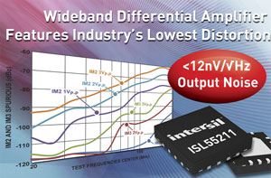 Intersil 公司推出3.3V單電源供電且只消耗35mA靜態(tài)電流(155mW)的低噪聲高帶寬差分放大器---ISL55211。
