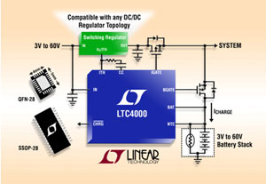 凌力爾特公司推出一款高電壓控制器和電源管理器 LTC4000,它實際上可將任何外部補償?shù)?DC/DC 電源轉(zhuǎn)換為一個全功能的電池充電器。LTC4000 能夠驅(qū)動常用的 DC/DC 轉(zhuǎn)換器拓?fù)浣Y(jié)構(gòu),包括降壓、升壓、降壓-升壓、SEPIC 和反激式。該器件提供了精準(zhǔn)的輸入和充電電流調(diào)節(jié),并可在一個 3V 至 60V 的寬輸入和輸出電壓范圍內(nèi)運作,因而與多種不同的輸入電壓電源、電池組和電池化學(xué)組成相兼容。其典型應(yīng)用包括高功率電池充電器系統(tǒng)、高性能便攜式儀器、電池后備系統(tǒng)、配備電池的工業(yè)設(shè)備、以及筆記本電腦 / 小型筆記本電腦。