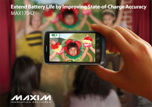 Maxim推出用于單節(jié)Li+電池組的電量計MAX17047。MAX17047采用公司最新的ModelGauge m3算法,是業(yè)內(nèi)唯一一款避免了傳統(tǒng)庫侖計算法中突變修正的庫侖電量計。與其它庫侖計相比,該ModelGauge m3 IC使用的檢流電阻更小、外部元件更少,有效節(jié)省了空間和成本。該款I(lǐng)C可理想用于單節(jié)和多節(jié)Li+電池的電量計算,適用于各種便攜式應(yīng)用(包括:無線手機(jī)、智能電話、平板電腦、電子書、便攜式游戲機(jī)、數(shù)碼相機(jī)、金融終端、便攜式導(dǎo)航設(shè)備以及便攜式醫(yī)療器械)。