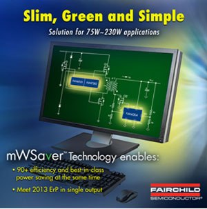 一體型 (All-In-One, AIO) 應(yīng)用設(shè)備電源的設(shè)計人員一直面對對空間有限、滿足世界各地能源法規(guī)要求,以及提供易于設(shè)計之解決方案的挑戰(zhàn)。飛兆半導(dǎo)體采用mWSaverTM技術(shù)的雙管反激式解決方案可為AIO解決方案提供最低的待機輸入功率。