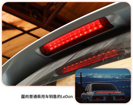 為了防止追尾,1984年美國規(guī)定汽車必須安裝高位制動燈。本公司開發(fā)了世界首款LED高位制動燈,1986年11月搭載于日產(chǎn)FairladyZ出口美國的車型上。