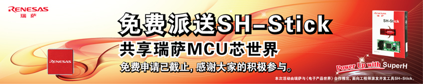 1) 由于免費(fèi)SH-Stick軟件開發(fā)工具數(shù)量有限,本次活動已于2009年10月23日結(jié)束申請,敬請廣大的瑞薩產(chǎn)品用戶及關(guān)注者予以